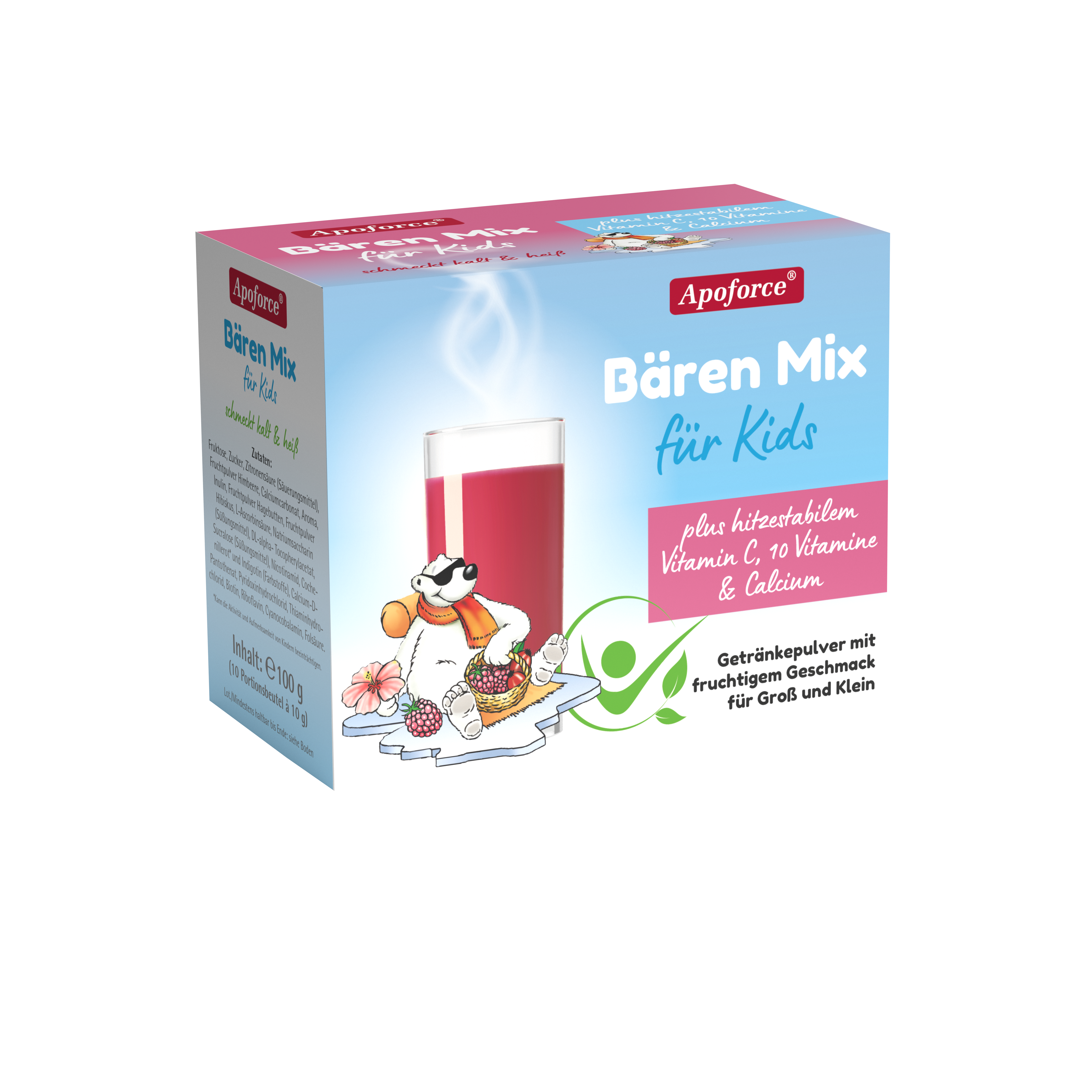 Getränkepulver mit 10 Vitaminen und Calcium zur Herstellung eines wohlschmeckenden Kalt- und Heißgetränkes mit Himbeerfruchtpulver sowie Hibiskus- und Hagebuttenextrakt.