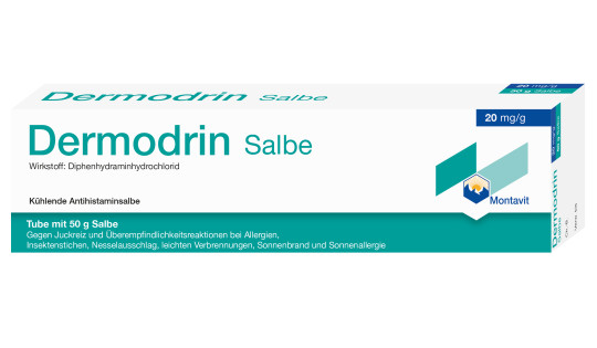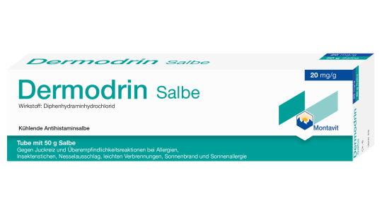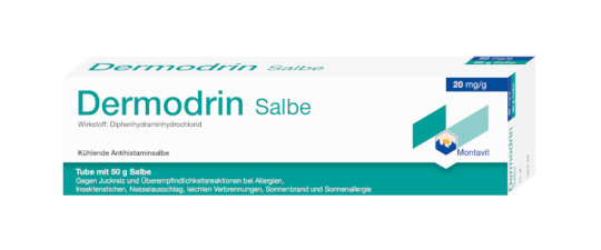 Dermodrin Salbe wird angewendet zur Behandlung von Juckreiz, lokalen Schmerzen und Überempfindlichkeitsreaktionen der Haut bei: