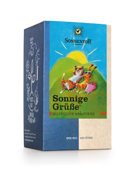 Heut geht die Sonne für dich auf. Mit dieser Teemischung haben wir den Sommer für dich eingefangen. In ihr tummelt sich eine ganze fruchtige Sommerwiese. Die Früchte-Kräuterteemischung schimmert rotbraun in der Tasse und schmeckt lebendig-frisch mit einer leichten Säure. Besonders in der warmen Jahreszeit ist sie der ideale Durstlöscher und ein ganz großartiger Begleiter von Desserts, Obstkuchen, Salaten und Co. Hol dir den Sommer in der Tasse!