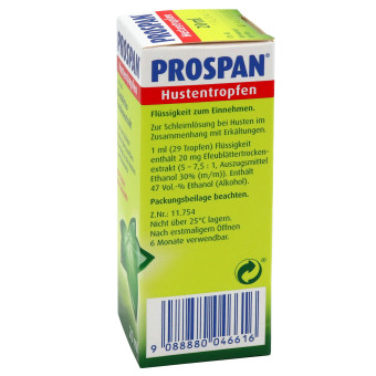 Prospan ® - Hustentropfen dürfen bei Kindern unter 2 Jahren wegen des Mentholgehalts (Gefahr eines Laryngospasmus) und wegen des Alkoholgehalts nicht angewendet werden.