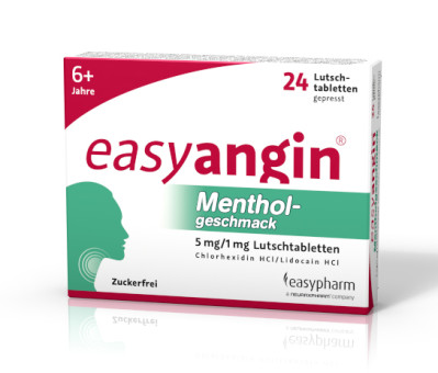 easyangin® kombiniert das schmerzstillend wirkende Mittel Lidocain mit dem keimtötenden Antiseptikum Chlorhexidin in einer Lutschtablette. Dadurch hilft es bei Entzündungen im Mund- und Rachenraum.