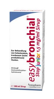 easybronchial® STOP JUNIOR unterdrückt den Hustenreiz; eine Behandlung ist daher mit einer möglichst niedrigen Dosierung durchzuführen und auf eine möglichst kurze Dauer zu beschränken.