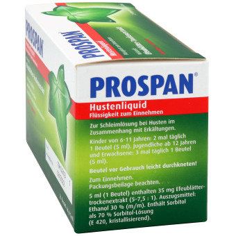 Prospan ® Hustenliquid erleichtert das Abhusten, entspannt die Bronchialmuskulatur und beruhigt so den Husten.