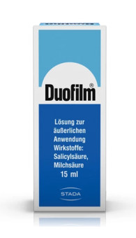 Duofilm ® ist ein Mittel zur Behandlung von gewöhnlichen Hautwarzen. Duofilm® enthält die Wirkstoffe Salicylsäure und Milchsäure. Diese lockern die Hornzellenschicht, was schließlich zur Auflösung der Warze führt.