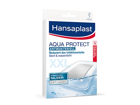 Die Wundauflage von Hansaplast MED Aqua Protect XXL enthält Silber-Ionen. Silber wirkt effektiv gegen ein breites Spektrum von Bakterien, reduziert dadurch das Infektionsrisiko und ist besonders hautverträglich. Die wasserdichten Pflaster sind besonders geeignet, um große Wunden abzudecken.