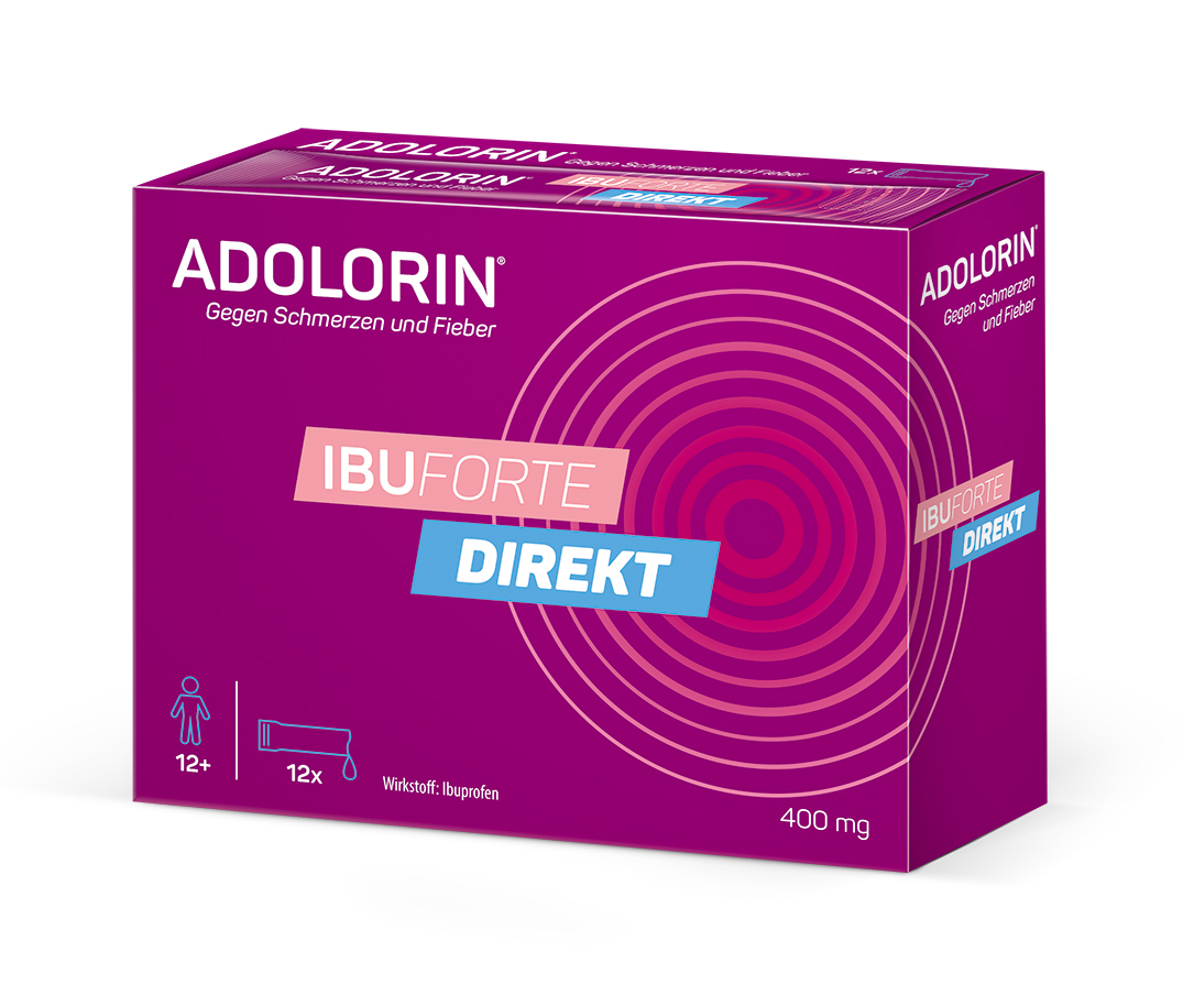 ADOLORIN® Ibuforte DIREKT 400mg wirkt schnell und direkt bei Schmerzen mit dem bewährten Wirkstoff Ibuprofen. Aufgrund seiner entzündungshemmenden, schmerzstillenden und fiebersenkenden Eigenschaft ist er in der Lage, Schmerzen wie Kopf-, Zahn- oder Regelschmerzen zu lindern und Fieber zu senken.