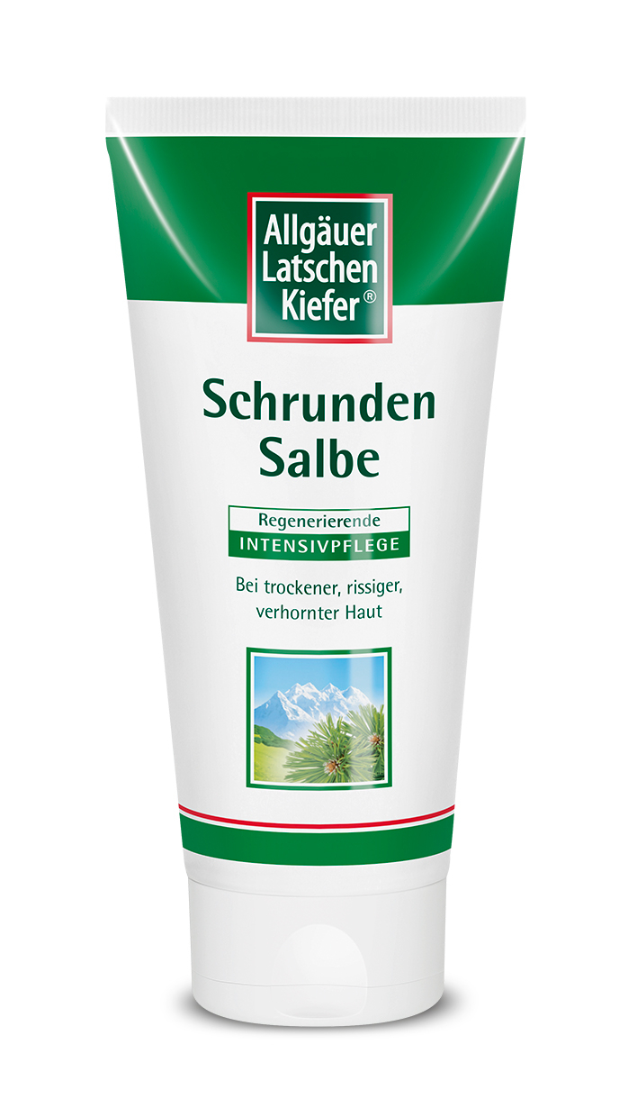 Trockene, strapazierte, rissige und stark verhornte Haut wird durch die Allgäuer Latschenkiefer Schrunden Salbe intensiv gepflegt, die Haut bekommt hierdurch ihre Widerstandskraft zurück und wird regeneriert. Schrunden können gemindert werden. Enthält Original Allgäuer Latschenkiefernöl. Ideal in der Wirkung in Verbindung mit dem Allgäuer Latschenkiefer Sole Fußbad. Zur intensiven Pflege der Haut bei Schrunden, Fissuren und kleinen, schmerzhaften Einrissen der Haut an den Füßen. Zur unterstützenden Hautpflege der Füße bei Diabetes geeignet.