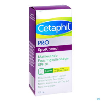 Pflege deine Haut direkt nach der morgendlichen Reinigung mit einer feuchtigkeitsspendenden Creme mit Lichtschutzfaktor, wie z.B. der PRO SpotControl Mattierenden Feuchtigkeitspflege mit SPF 30. Sie versorgt die Haut mit Feuchtigkeit und schützt sie vor schädlichen UVA- und UVB-Strahlen. Dabei hinterlässt sie einen matten Teint. Diese Feuchtigkeitspflege ist nicht komedogen.