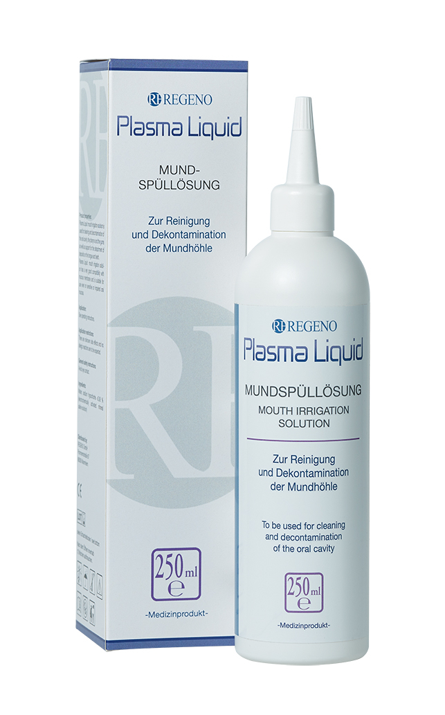 Die Plasma Liquid® Mundspüllösung dient der Reinigung und Dekontamination der Mundhöhle, des Rachenraums und des Zahnfleisches sowie der Unterstützung zur Ablösung von Belägen auf Zunge und Zähnen. Aufgrund ihrer guten Schleimhautverträglichkeit kann die Plasma Liquid® Mundspüllösung auch bei sensibler oder beeinträchtigter Mundschleimhaut eingesetzt werden.