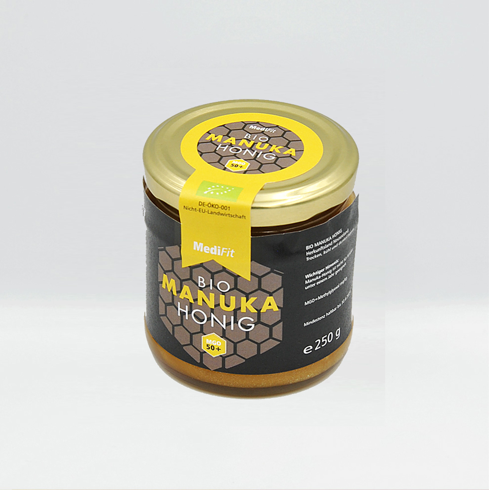 Manuka Honig mit einem MGO (Methylglyoxal) Rating von 50+.