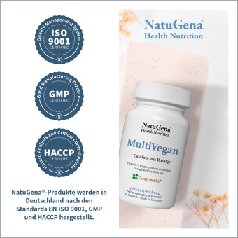 MultiVegan enthält alle Nährstoffe bei pflanzlicher Ernährung (mit Ausnahme von Vitamin D, K2 und A, die als fettlösliche Nährstoffe aufgrund der besseren Bioverfügbarkeit und Dosierbarkeit separat erhältlich sind). Die vegane Ernährung, insbesondere in unterschiedlichen Lebensphasen, stellt viele Menschen vor große Herausforderungen, was insbesondere in Familien dazu führt, dass jedes Familienmitglied je nach Alter seine eigene Produktpalette hat. Das Risiko bei derart komplizierten Rahmenbedingungen liegt darin, dass ggf. wichtige Nährstoffe vergessen oder falsch dosiert werden. Die Lösung dieser Herausforderungen sehen wir in diesem Kombiprodukt, denn abhängig von der eingenommenen Menge der Kapseln können die altersabhängigen Bedürfnisse und Zufuhrempfehlungen bedient werden.