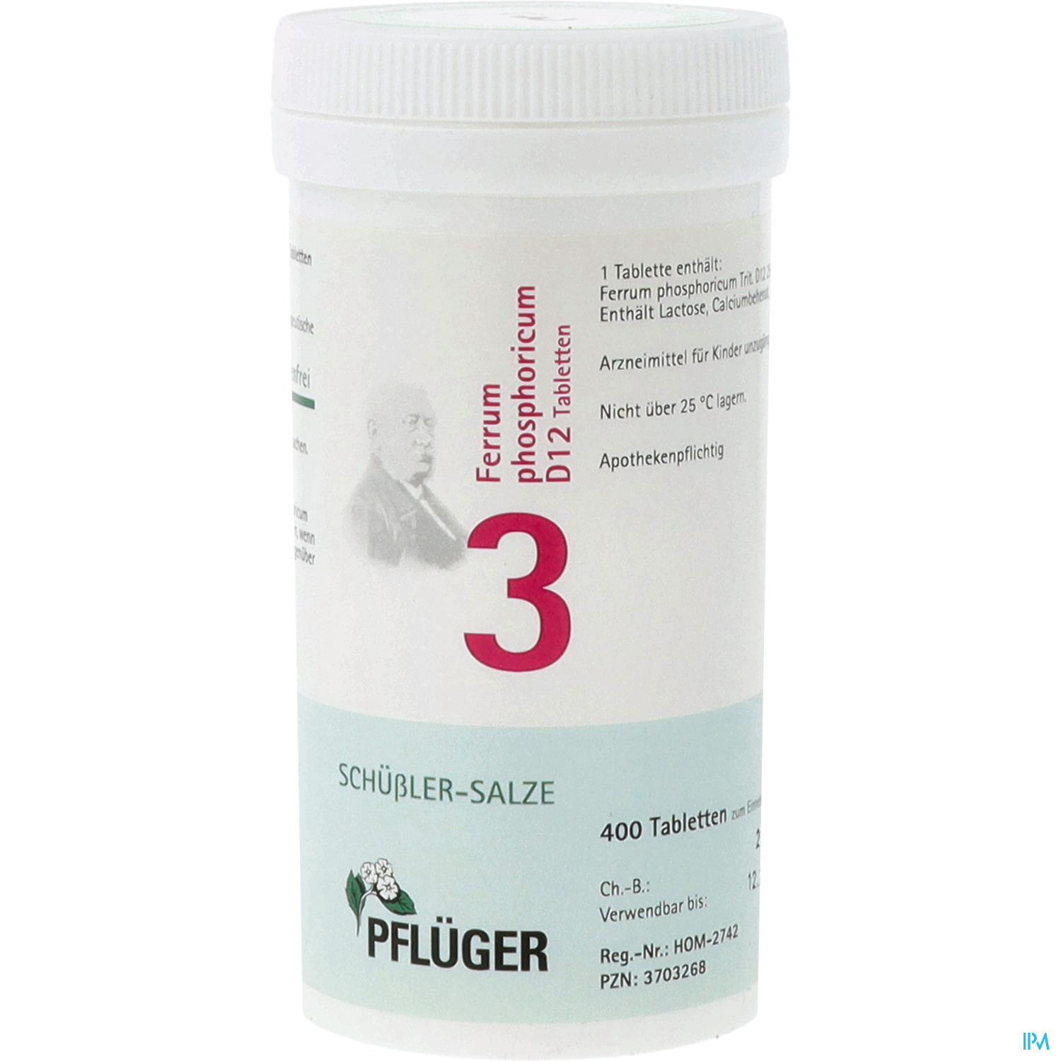 Biochemie Pflüger® Nr. 3 Ferrum phosphoricum D12, Zusammensetzung: 1 Tablette enthält: Wirkstoff: Ferrum phosphoricum Trit. D12 250 mg. Sonstige Bestandteile: Calciumbehenat (DAB), Kartoffelstärke.