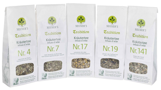 Birkenblätter, Brennnesselkraut, Liebstöckelwurzel, Stiefmütterchenkraut, Wacholderbeeren