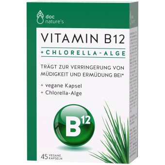 Zutaten: Füllstoff: Akaziengummi; Chlorella-Algen-Pulver 43%; Cyanocobalamin (Vitamin B12) 2%; Trennmittel: Magnesiumsalze von Speisefettsäuren; Kapselhülle: Hydroxypropylmethylcellulose.