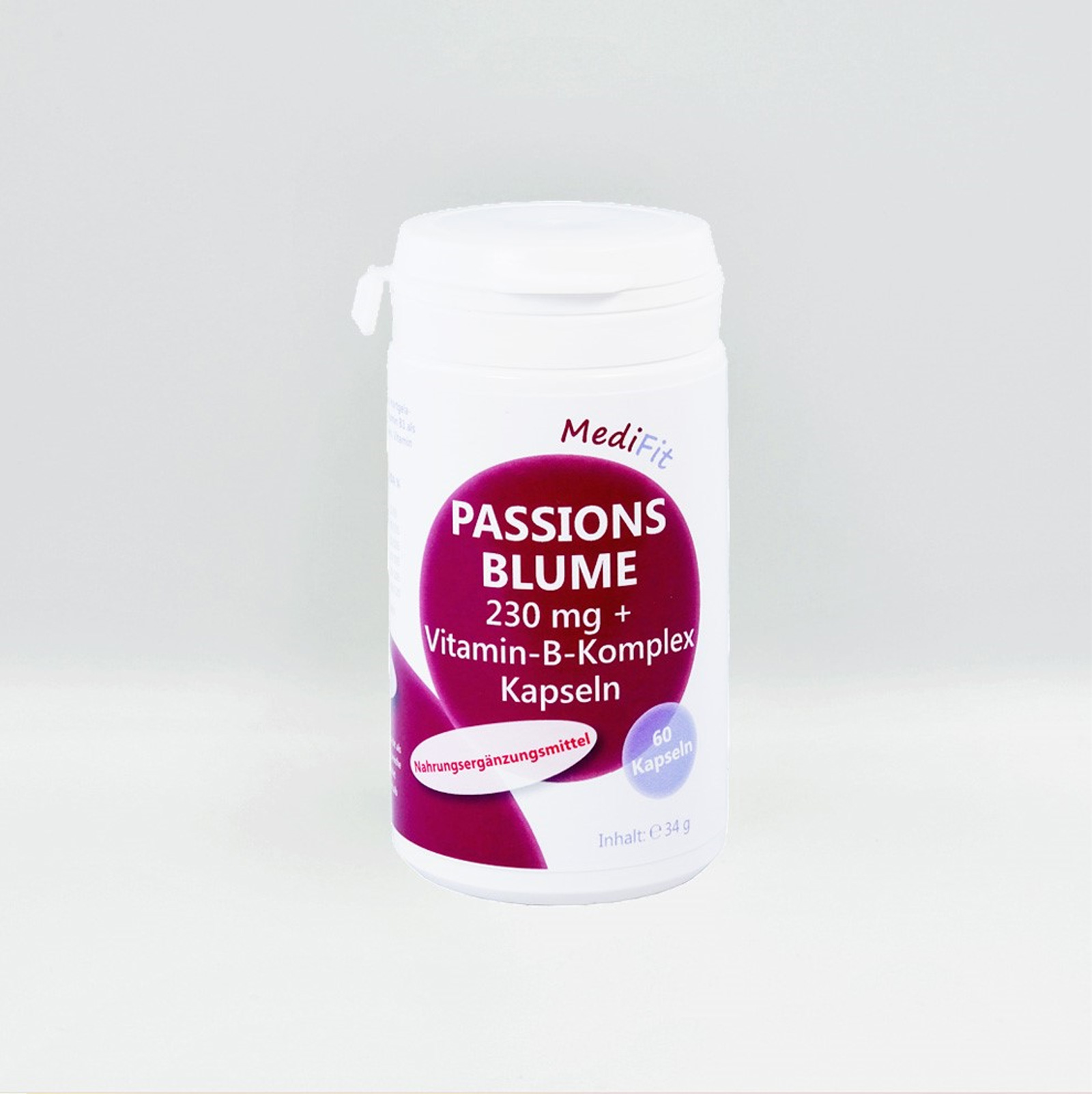 Passionsblumenpulver, Maisstärke, Hartgelatine mit Farbstoff Titandioxid, Vitamin C, Vitamin B1 als Thiaminmononitrat, Vitamin B2 als Riboflavin, Vitamin B6 als Pyridoxin, Folsäure, Vitamin B12